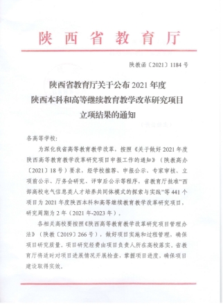 根据12月16日《陕西省教育厅关于公布2021年度陕西本科和继续教育教学改革研究项目立项结果的通知》,由万象城官网成党伟老师主持的《加强和改进地方高校公共艺术教育的探索与实践(21BY156)》获批2021年陕西本科教育教学改革研究一般项目。实现了万象城awcsport官网省级教改项目立项的突破。