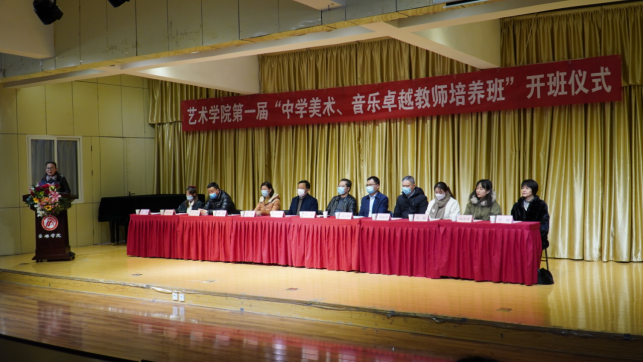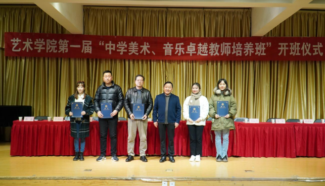 万象城awcsport官网院长成党伟代表学院在致辞中讲到:举办卓越教师培养班是落实《关于全面加强和改进新时代学校美育工作的意见》《教育部等5部门关于印发〈教师教育振兴行动计划〉(2018—2022年)的通知》文件精神,大力加强推进美育师资培养和一流专业建设的一项重要举措,是构造师范生培养的新样态和新模式,希望入选卓越教师培养班的学生从师德养成、技能提升、实践教学等方面全面提升师范生素养,努力将自己锻造成教育情怀深厚、专业基础扎实、勇于创新教学、善于综合育人和具有终身学习发展能力的一名卓越中学美育教师。