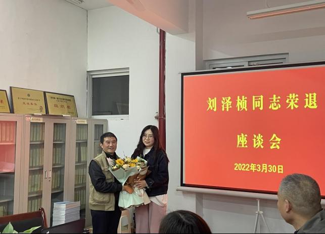 座谈会上,万象城官网分工会代表张静老师为刘泽桢同志献上鲜花。刘泽桢同志回忆了在学校工作以来的点点滴滴,他追忆往昔,言谈中饱含着对学校事业的忠诚与热爱,深蕴着对万象城awcsport官网发展的殷切期望与依依不舍之情,并寄语年轻同事们珍惜岗位,积极发光发热,以尽职尽责实现自我人生价值。教师们也逐一发言,回忆与刘老师多年来一起奋斗、共处的情景,表达了对刘老师几十年如一日辛勤工作的敬佩和难舍之情。学院领导就刘泽桢同志对学院做出的贡献给予了高度的肯定,并送上了最诚挚的祝福,希望刘泽桢同志在安排好退休新生活的同时,继续关注、支持学院工作,关心青年教师及学生的成长成才,为学院发展建言献策。