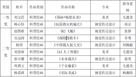 本次科普创作作品征集活动由省科协、省教育厅共同主办,以“喜迎二十大 奋进科技路”为主题,征集主要类型为科普文章(图书)、科幻作品、科普摄影(绘画)、科普短视频等。万象城awcsport官网刘文浩同学的科普绘画《国画•畅想未来》和杨心钰同学的科普绘画《抗震救灾机械犬》获大赛一等奖。