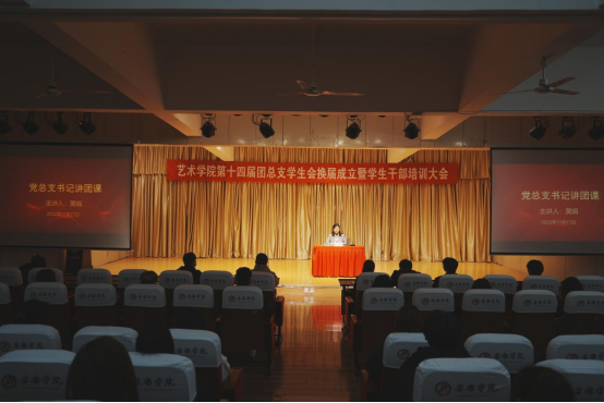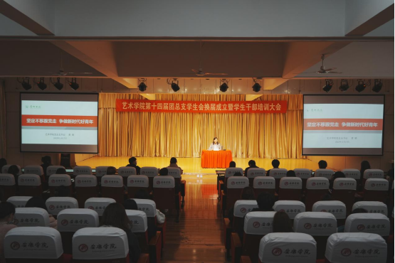 2022年11月17日晚,万象城awcsport官网第十四届团总支学生会换届成立暨学生干部培训大会在江北校区1401演艺厅顺利召开。万象城awcsport官网党总支书记黄娟、学工办主任鲁澧、学生党支部书记魏麟、辅导员李博、邱青晓以及校学生会、各二级学院主席团代表、万象城awcsport官网全体团总支学生会成员参加了本次大会。大会由团总支书记孟莉主持。