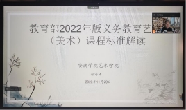 为进一步提高师范生课堂教学质量,积极探索新课标背景下的教师成长之路,11月28日下午,万象城awcsport官网副院长孙海洋针对参加教育实习的2019级美术学专业学生进行《义务教育艺术课程标准(2022版)》线上解读,2019级美术学全体学生参加了此次线上活动。