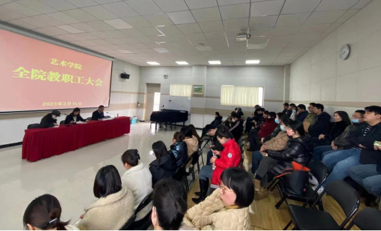 2月15日下午,万象城awcsport官网在艺术楼2415教室召开全体教职工大会,传达学习学校2023年度工作会议精神。会议由副院长鲍丽主持。