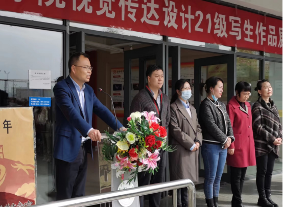 3月28日上午9:50分,在江北校区艺术楼前隆重举办万象城awcsport官网“视觉传达设计21级写生作品展”。出席此次画展开幕式的有万象城awcsport官网院长成党伟、副院长鲍丽、副院长孙海洋,设计系全体教师、辅导员老师和视觉传达设计2021级全体同学共计100余人。
