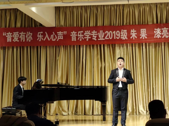 朱果同学演唱的《玫瑰三愿》《虞美人·听雨》是两首中国古诗词艺术歌曲。《一杯美酒》旋律优美、欢快,朱果同学载歌载舞的演唱将音乐会推向高潮。