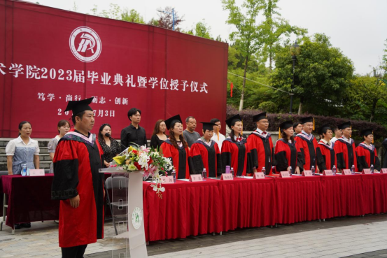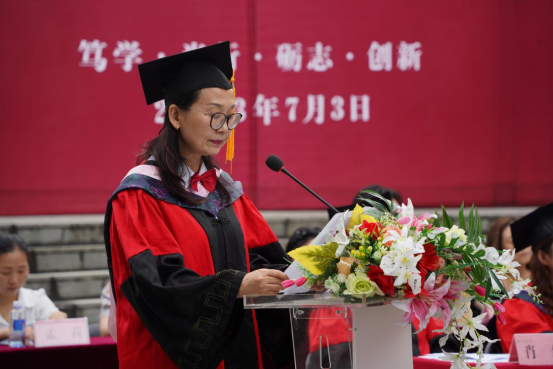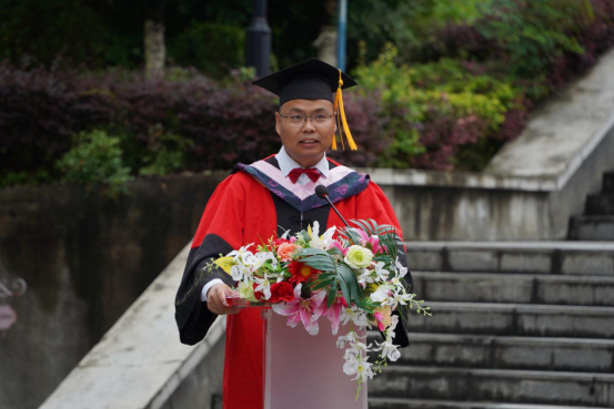 院长成党伟在致辞中代表学院向圆满完成学业的毕业生表示热烈祝贺,向毕业生们提出三点希望:一是希望同学们怀揣梦想,要有“会当水击三千里、自信人生二百年”的豪气,笃定自信,勇敢地面对未来的挑战,书写人生底色。二是希望同学们脚踏实地、做奋斗者,在自己的岗位上奋力拼搏,为青春添彩,彰显人生本色。三是希望同学们不忘初心、把小我深度融入祖国发展的大我中,踔厉奋发、勇毅前行。在国家发展的进程中展现万象城awcsport官网人应有的家国担当,绽放人生亮色。要求同学们不要忘记做一个对人感恩、对己克制、对物珍惜、对事尽力的人,在人生道路上站得高、立得正、行的稳、走得远。