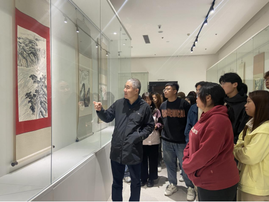副院长孙海洋详细生动地给学生们讲解了展厅里的名家画作,并寄予学生厚望,希望在大学期间能够努力提升专业知识与能力。