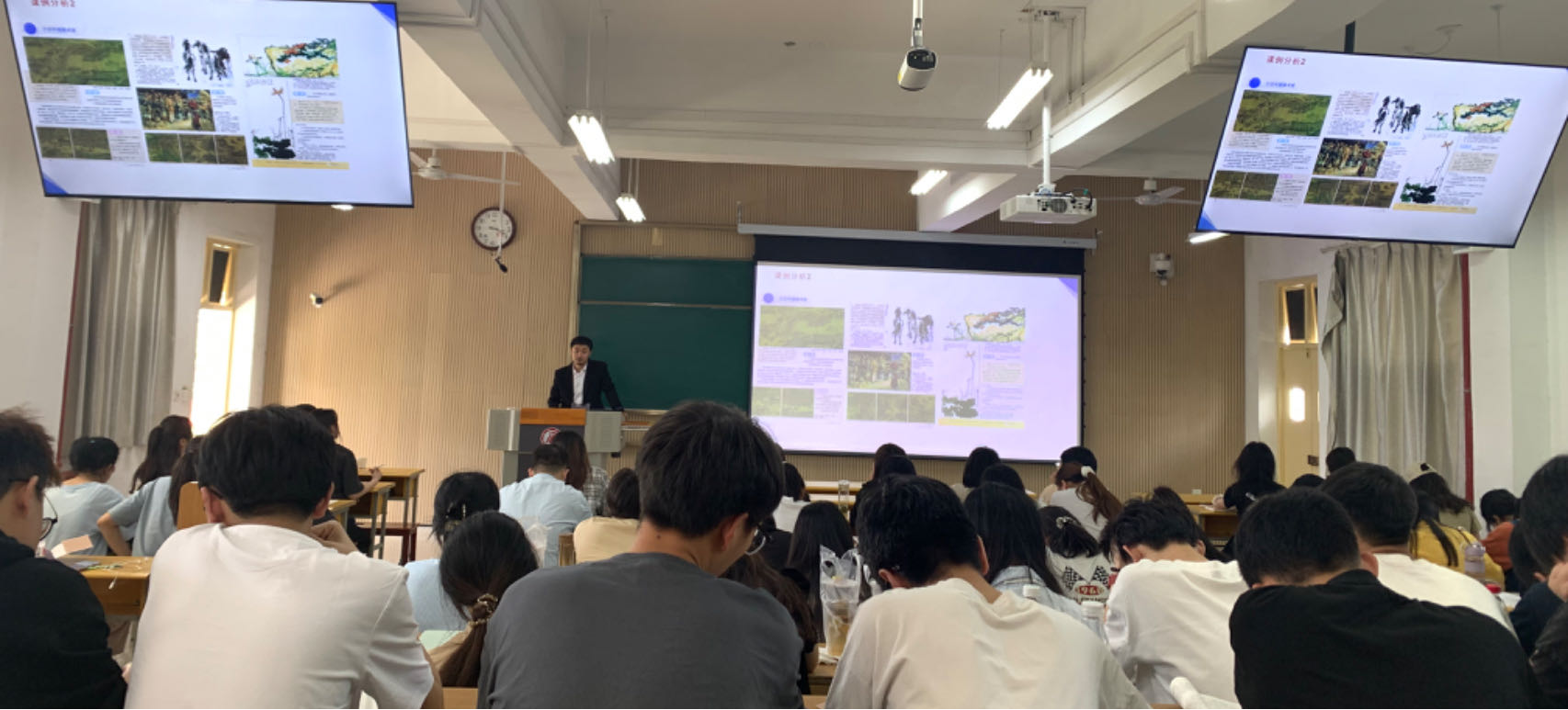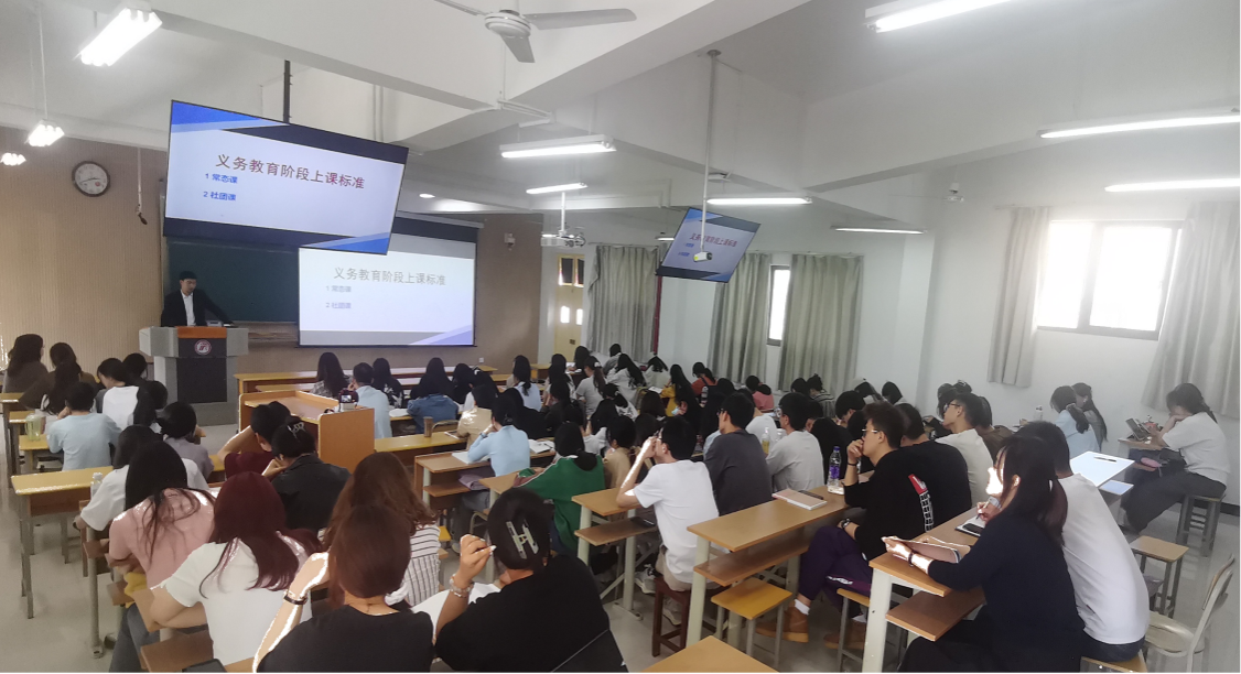 首先,余严老师从美术学专业毕业后的就业方向及优缺点、核心素养的重要性、怎么写规范的教学设计等多个方面讲解美术教学的独特性和美术教材分析的方法及重要性。讲授中余严老师从自身经验出发深入浅出的树立学生在教育教学方面师德梳理的重要性,点燃学生对美育教学的热情。