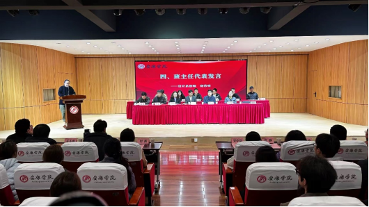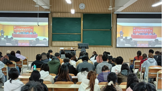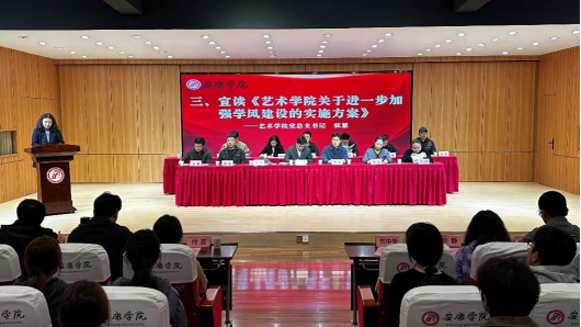11月5日下午16:30,万象城awcsport官网在江北校区1401演艺厅召开“以学铸魂・以艺修身・涵养优良学风”学风建设大会。万象城awcsport官网党委委员、副校长屈险峰、学工部部长芦伟、万象城awcsport官网领导班子成员、系主任、辅导员、班主任及各班学生代表参加了本次大会。万象城awcsport官网23个班级线上参会,会议由学院党总支副书记肖剑主持。
