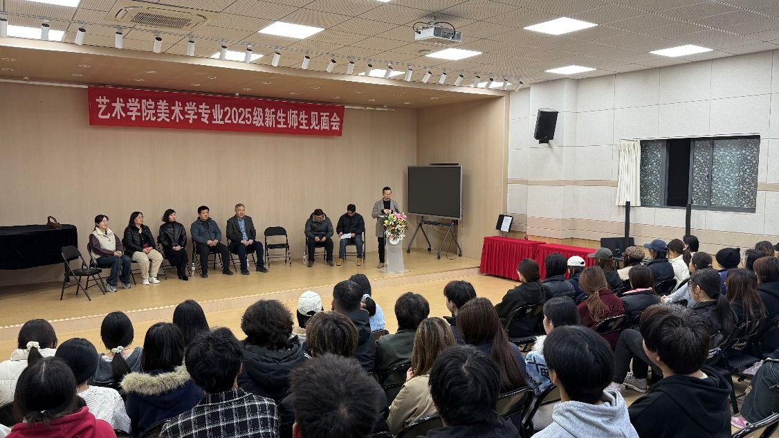 会上,毛德龙老师结合美术学专业的发展历程与学科优势,向新生们系统介绍了学院的办学理念、师资力量、教学设施及人才培养成果。