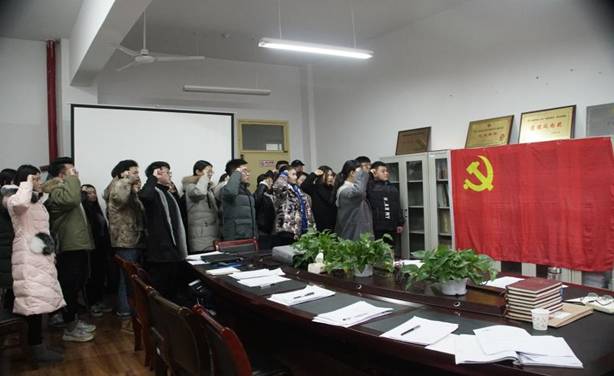 转正大会结束前,学生党员代表郭春平同学带领全体党员,在鲜红的党旗前,庄严地举起右手宣誓,嘹亮的宣誓声中,大家重温自己对党的誓言,表达了为党的事业奋斗终生的决心和愿望。整个宣誓过程庄重严肃,极大地激发了党员的责任感、荣誉感。
