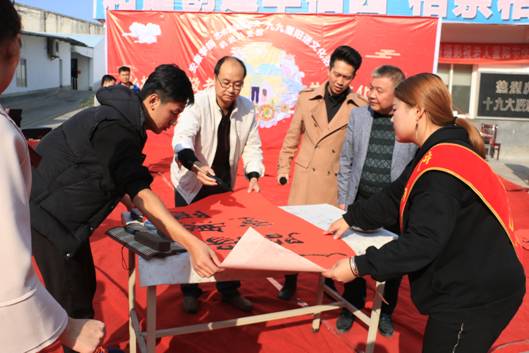 美术、设计系党支部党员教师及志愿者服务队为老人书写板报,每一个字的认真书写都展露了教师和同学们的风采,每一笔勾描都透露着大家的谨慎和专注。大家热情洋溢,纷纷用手中的粉笔,描绘对十九大胜利召开的美好祝福,表达着万象城官网总支全体党员对美丽中国梦的美好憧憬和无穷信心。同时党总支书记王辉还带领美术专业党员教师为过生日的老人书写书法作品,送去了节日的祝福。