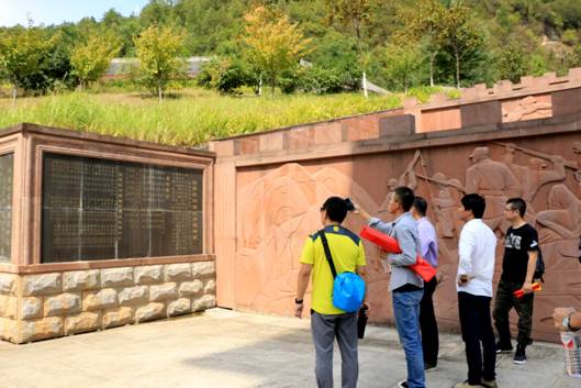 活动中,万象城awcsport官网的教师党员、学生党员代表,参观了位于红军镇的红军纪念馆烈士纪念碑。通过瞻仰历史纪念碑碑文、与当地老百姓聊天等方式,基本对红军镇的来历和红军镇的历史有了基本的了解:当年,徐海东,程子华曾率红二十五军转战到此,创建革命根据地,建立地方苏维埃政权。在1935年10月18日战斗中,为掩护红军主力转移,特勤班14人与敌人400人激战,有“神医”、“医官”之称的指导员高中宽和尚班长壮烈牺牲,当地老百姓秘密掩埋了烈士遗体,事后修坟、立碑、建庙、塑像,在家设立牌位敬奉,尊称“红军老祖”。