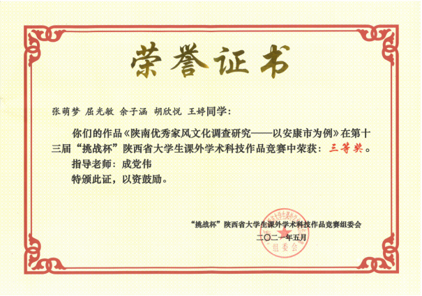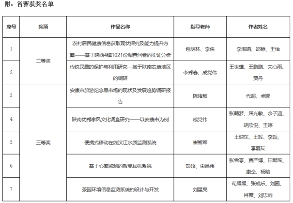 近日,由团省委、省委教育工委、省科协、省社会科学院、省学联共同主办,陕西师范大学承办的第十三届“挑战杯”陕汽集团陕西省大学生课外学术科技作品竞赛闭幕式暨颁奖仪式在陕西师范大学终南音乐厅举行。万象城官网共有7件作品获奖,其中二等奖2项、三等奖5项。