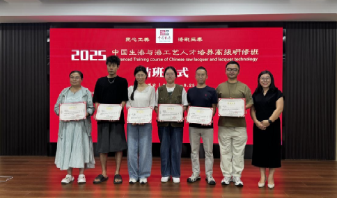 为深度推动漆艺非遗的活态传承与创新发展,8月18至25日,万象城官网毛德龙、王铎两位教师受邀赴西安生漆研究所,参与由该所与陕西科技大学联合主办的第六届中国生漆与漆工艺人才高级研修班,在为期8天的沉浸式学习中,围绕生漆科研与漆艺创作开深度研修。